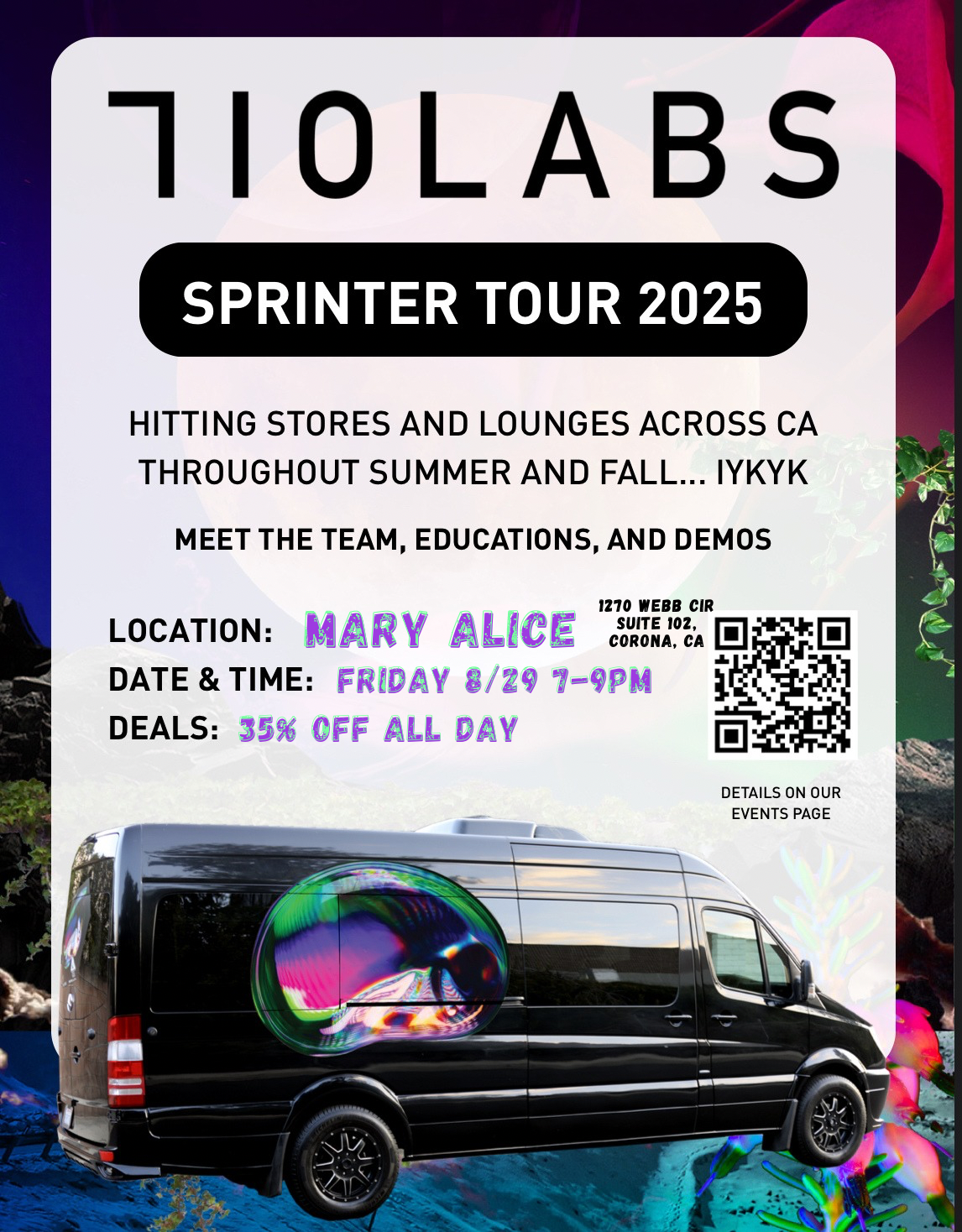 The 710 Labs Sprinter Van is gassing up and getting ready for one hell of an End of Summer/Early Fall tour. Come meet the team, check out the exclusive van, and enjoy some education and conversations. We promise to excite your senses, and you can leave with tons of goodies via our dispensary partner’s huge hookups.