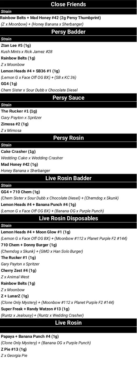 Z Pie #13 from Raw Genetics crosses our beloved Z with Georgia Pie's sweet, doughy profile. Persy Sauce is our most labor-intensive product — and one of the best solventless representations of our genetics.